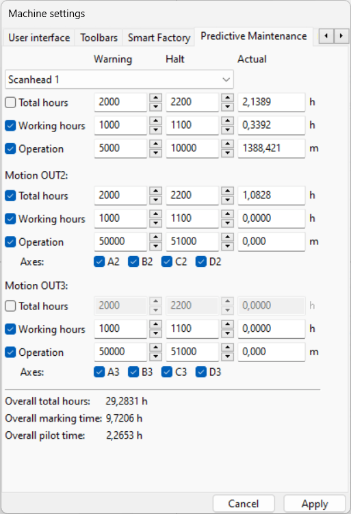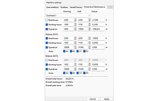 - Different counting methods for maintenance are supported such as operation times and real usage of the hardware