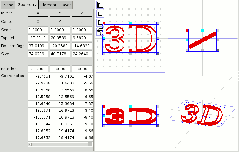 - Comfortable editing of 3D data in views from top, front and side