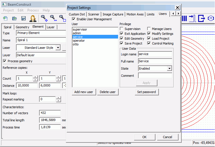 User- and Privilege-Management (BeamConstruct PRO only)
