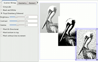 - Imported scanner bitmaps freely scaleable and modifyable