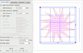 - Grouping of elements into a split group to process working pieces larger than the available working area